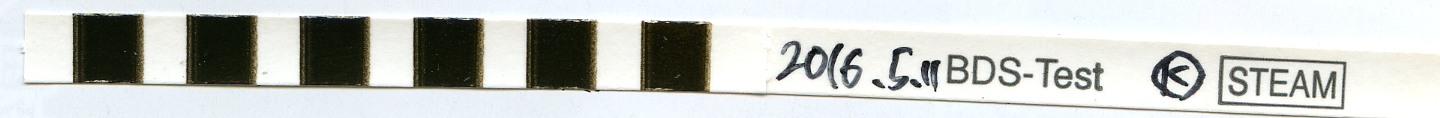 白色い所が黒変化し、滅菌が問題なく完了したことを示しています。
